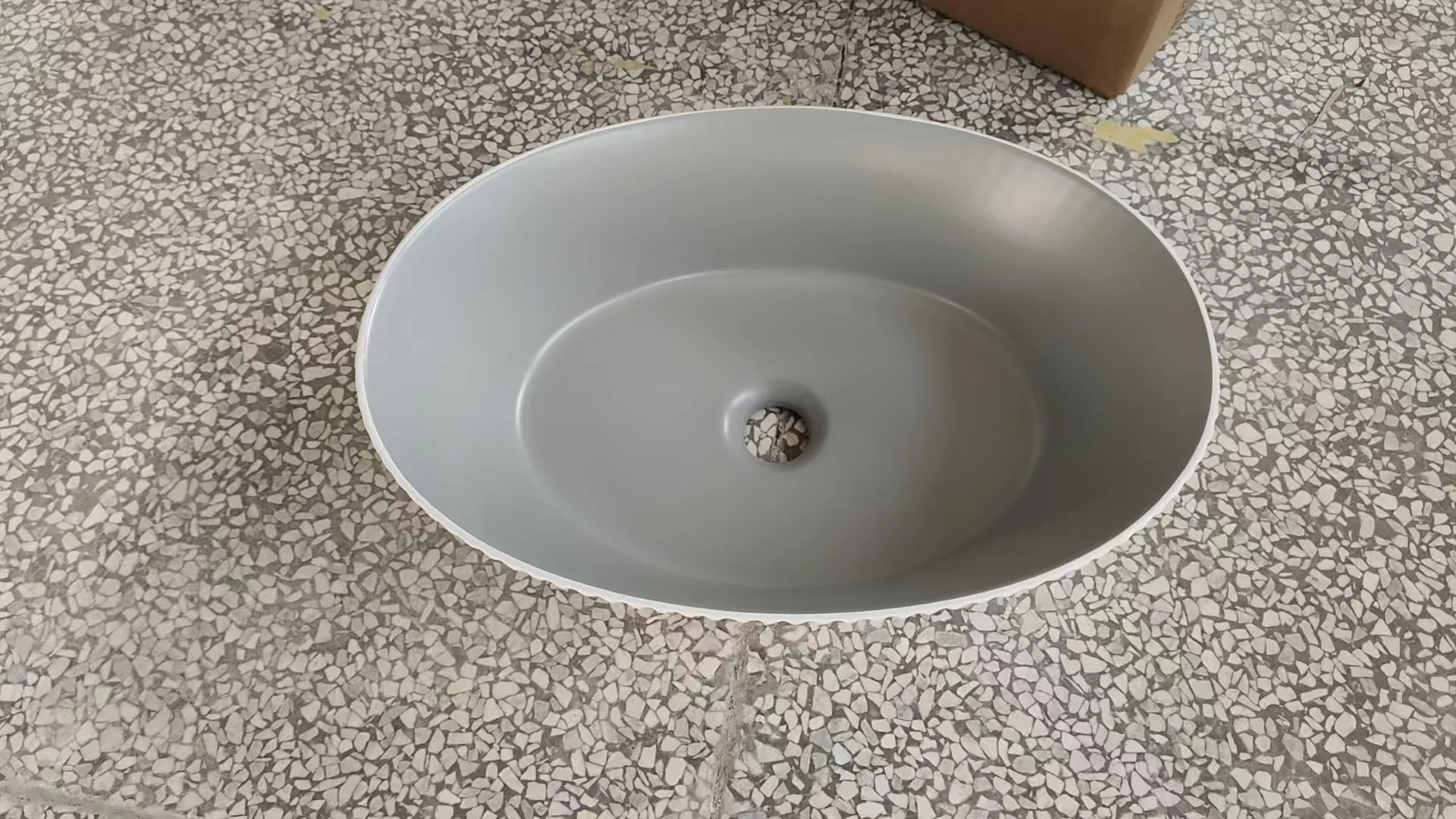 Enhance your bathroom’s aesthetics with this beautifully crafted oval ceramic countertop basin, designed to bring elegance, durability, and modern style to any space. Featuring a matte white ribbed exterior paired with a smooth grey interior, this basin offers a sophisticated two-tone finish that blends seamlessly with contemporary, minimalist, or premium bathroom décor.