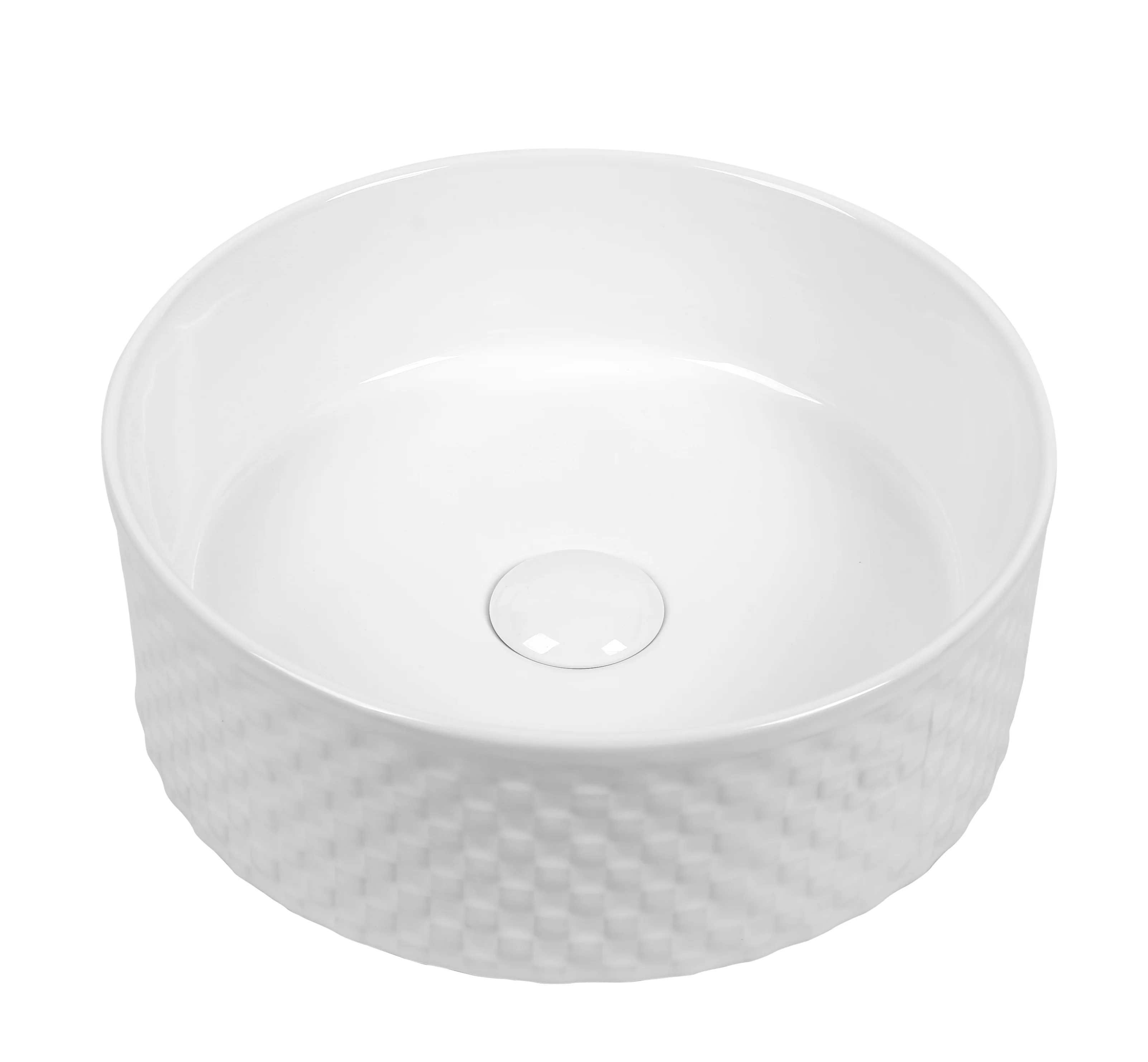 The elegant round shape with a subtle geometric texture on the exterior brings sophistication and uniqueness to your bathroom décor.
